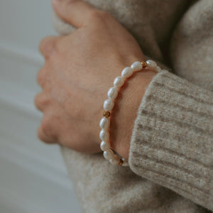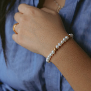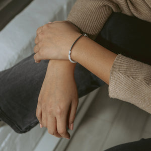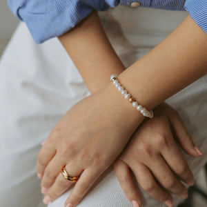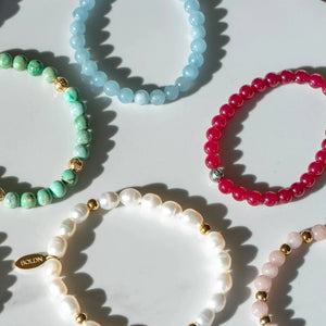 Elegant and timeless, this bracelet is crafted on a durable elastic cord with 6mm white jade beads. Its soft, milky tones bring a refined simplicity, making it a versatile piece for any occasion. Wear it solo for a clean, minimalist look or stack it with our green aventurine bracelet, Aurora, for a crisp contrast of vibrant green and soft neutrals. A classic touch, redefined.
